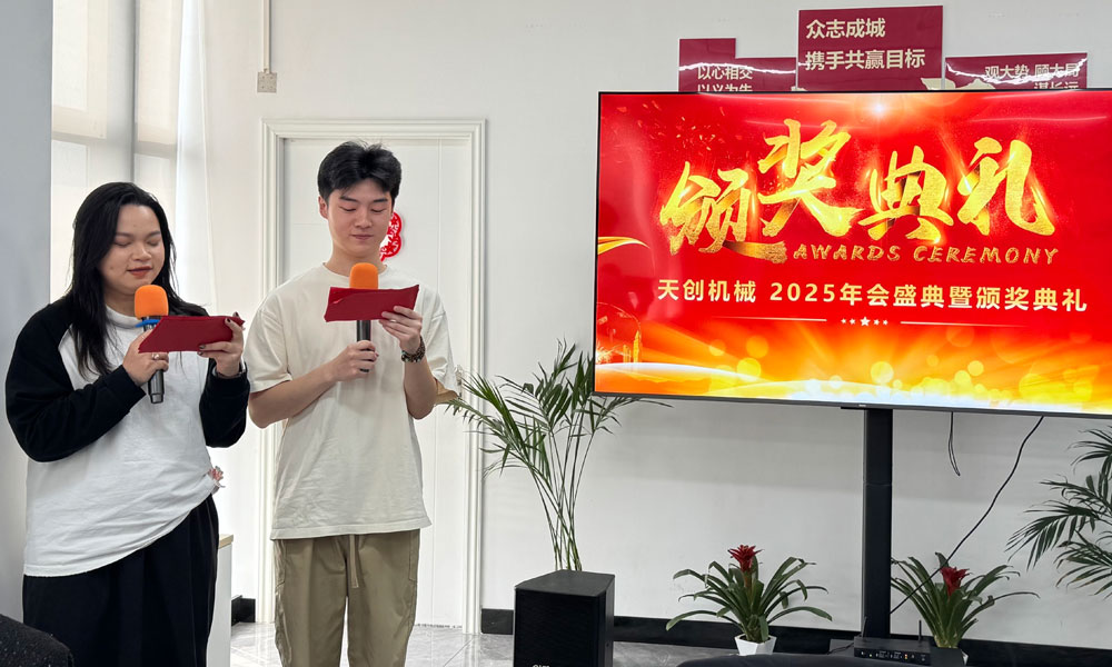 年會在莊嚴(yán)而熱烈的氣氛中拉開帷幕。公司總經(jīng)理首先致開幕辭,她對全體員工在過去一年的辛勤付出與卓越貢獻(xiàn)表示衷心感謝。得益于全體同仁的共同努力,公司在2025年實現(xiàn)了業(yè)績的跨越式增長。為感謝員工的卓越貢獻(xiàn)并體現(xiàn)公司以人為本的管理理念,總經(jīng)理現(xiàn)場正式宣布:公司將給予所有員工一個充實而溫馨的春節(jié)長假,假期定為2026年2月7日至2月23日。這一舉措既是對過往成績的肯定與激勵,也是希望員工能在充分休整、陪伴家人后,以更飽滿的精神狀態(tài)迎接新一年的挑戰(zhàn)。2025年,在全球經(jīng)濟(jì)復(fù)雜多變的背景下,天創(chuàng)機(jī)械實現(xiàn)了業(yè)績的跨越式增長,國際市場份額穩(wěn)步提升,尤其在俄羅斯、南美及東南亞等重點(diǎn)市場,品牌影響力與客戶滿意度均達(dá)到歷史新高??偨?jīng)理指出,這些成績的取得,源于公司對“專業(yè)品質(zhì)、全球服務(wù)、持續(xù)創(chuàng)新、以人為本”核心價值觀的堅守,更是每一位天創(chuàng)人并肩奮斗的成果。